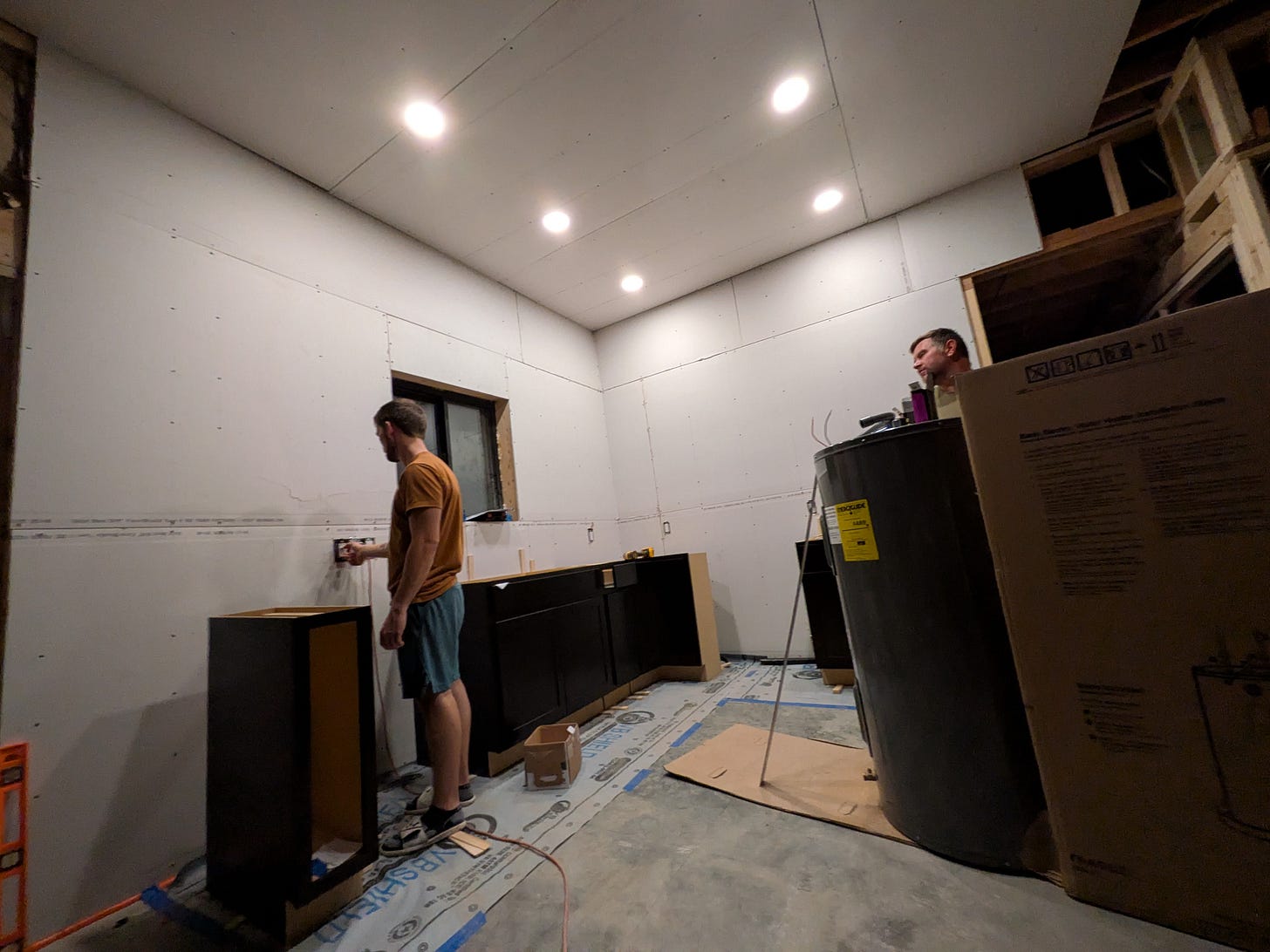 My wife. Her parents. My parents. We worked tirelessly - framing, wiring, insulating, drywalling, flooring, installing cabinets, hanging doors, painting trim. A friend of mine (Dalton - who writes UP with me) even flew in from Texas to help hang drywall with us for a week.